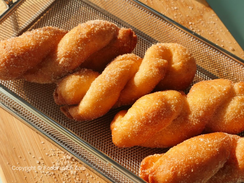 Twisted donuts ko cheeni+darchini ka mixture mein dal ker ache tarhan coat ker lein.