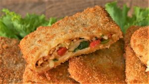 Now coat prepared box patties in all-purpose flour,dip into beaten eggs then coat in bread crumbs and again dip into beaten eggs then coat in bread crumbs.