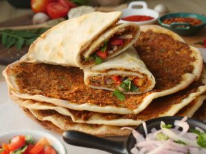 Add & spread butter,place cabbage leaves,fried rice,potato fries,stir-fried vegetable,shashlik sauce & serve!