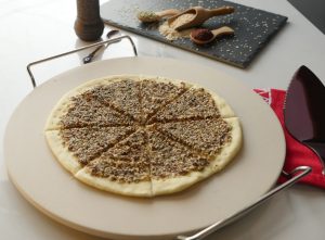 In bowl,add coarsely grounded sesame seeds,sumac powder,dried thyme,dried oregano,salt,black pepper powder and mix well.